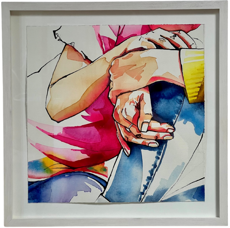 Kunstwerk "Trust II" von Aline Regese, Aquarell mit Tusche auf Arches Aquarellbüttenpapier (356 g/m²), 32 x 32 cm, gerahmt 40 x 40 cm
